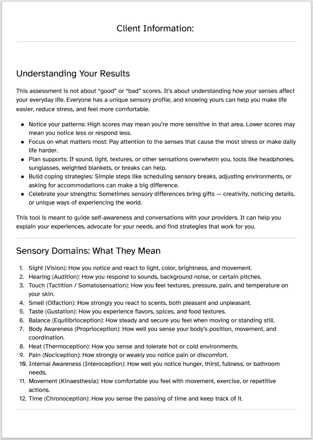 The Sensory Sensitivity Assessment Tool